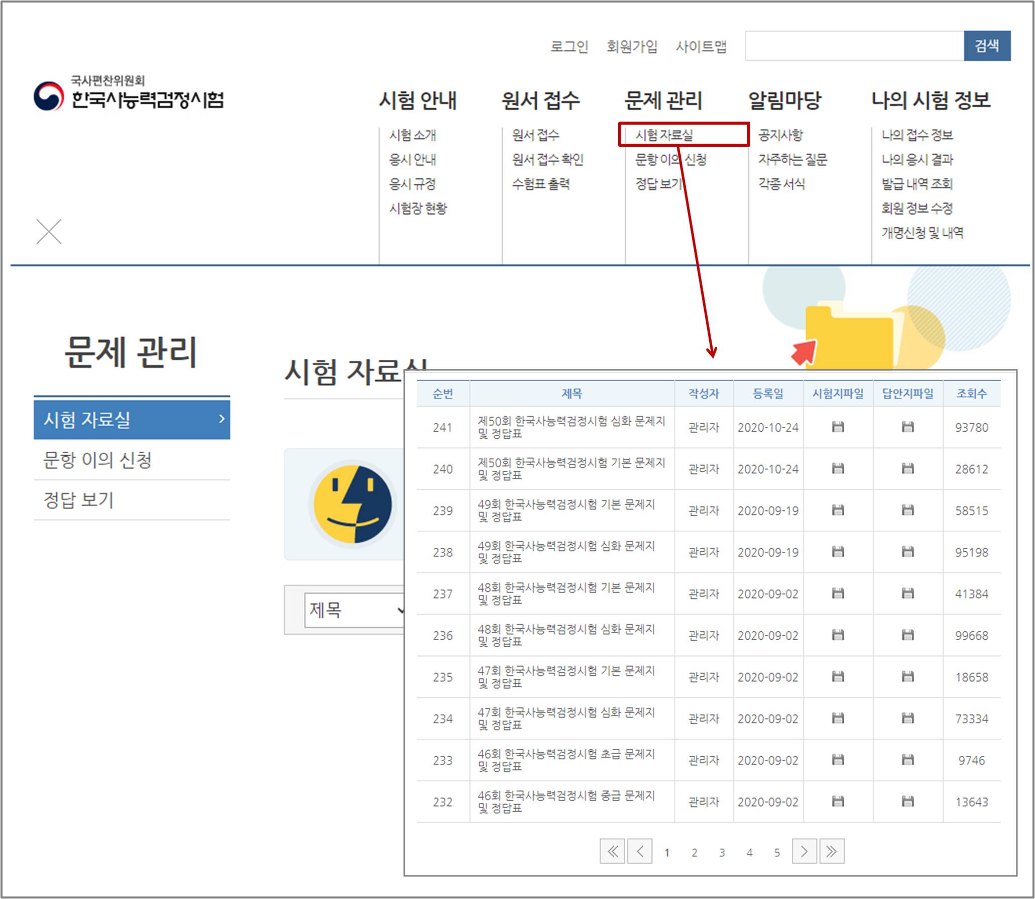2) 한국사능력검정 홈페이지에서 기출문제를 다운로드하는 것 이외에도 국사편찬위원회의 해당 홈페이지를 통해 온라인으로 이전 회차들의 기출문제를 풀어보는 것이 가능합니다.