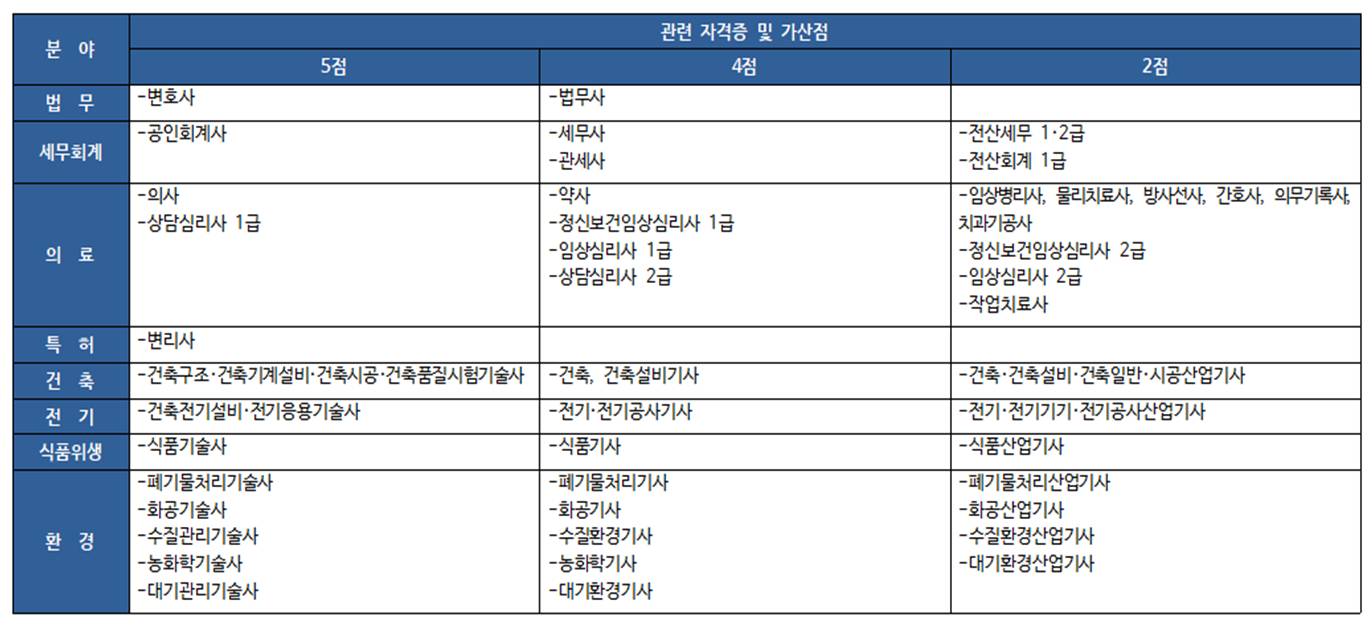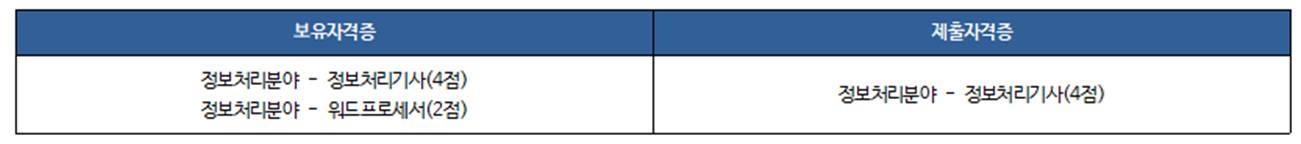 * 같은 분야 자격증은 한 가지만 인정하기 때문에 높은 점수의 자격증을 제출하는 것이 유리합니다.