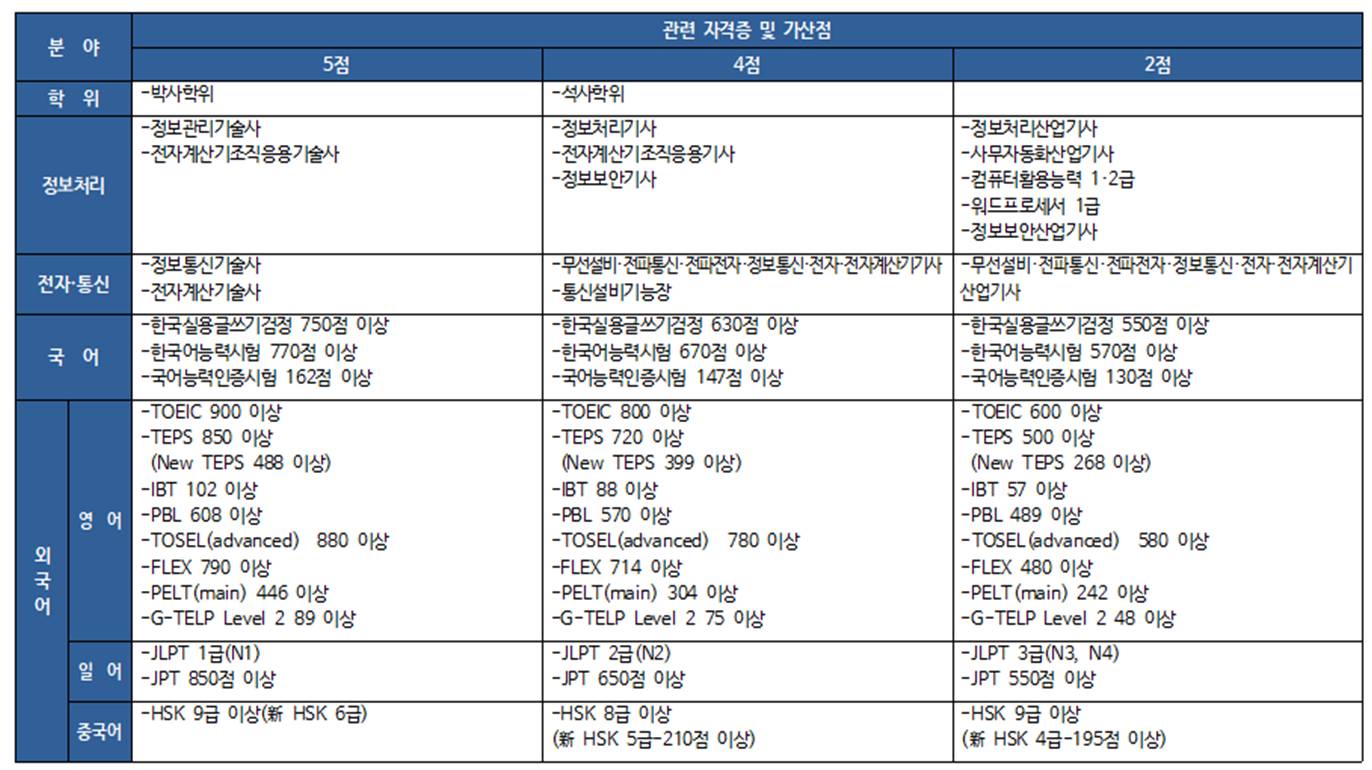 * 같은 분야 자격증은 한 가지만 인정하기 때문에 높은 점수의 자격증을 제출하는 것이 유리합니다.