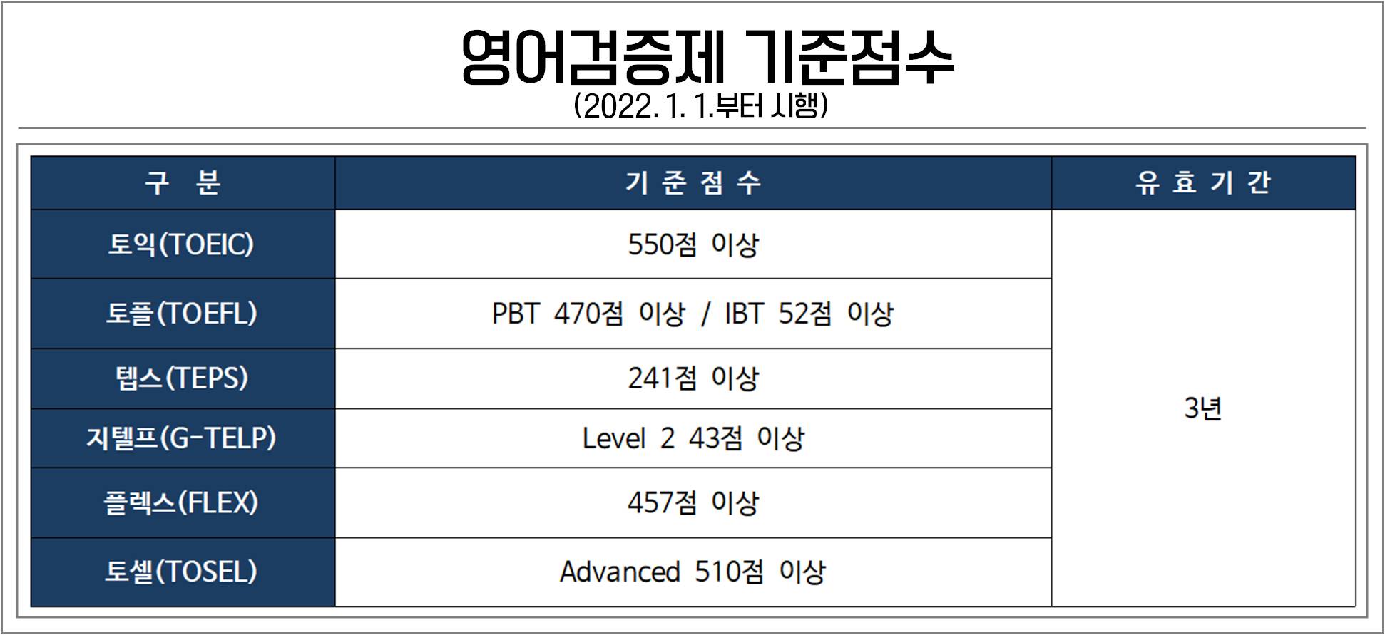 지금까지 2022년도부터 시행되는 영어검증제의 기준점수와 사전등록방법 등에 대해 알아봤습니다. 아직 시행까지는 1년여 가까지 남았지만 미리 준비해두시면 바쁜 수험생활에 있어 부담이 조금은 줄어들거라 생각합니다.