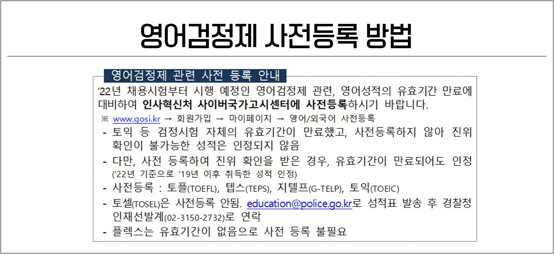 *토셀(TOSEL)은 사전등록 불가능 'education@police.go.kr'로 성적표 발송 후 경찰청 인재선발계(02-3150-2732)로 연락