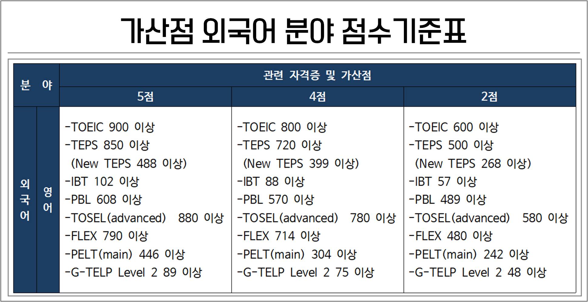 기존 공인 영어성적 활용 및 추가 가산점 준비