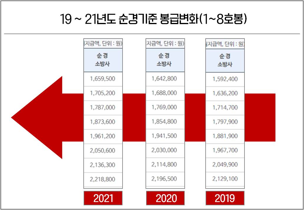 2019~2021년 봉급 변화(순경 기준, 1호봉)