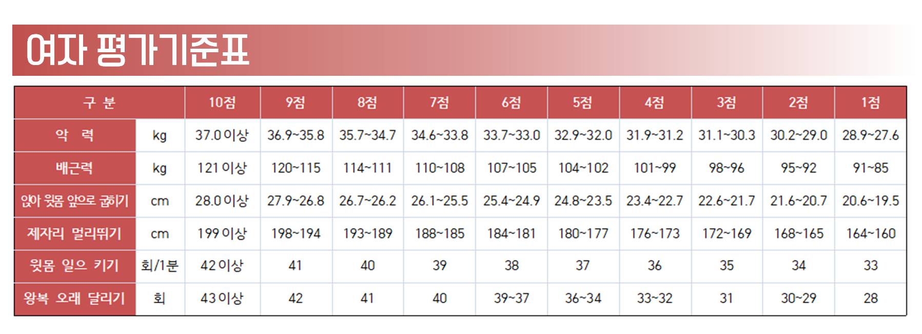 송방공무원 체력시험 평가기준표 알아보기