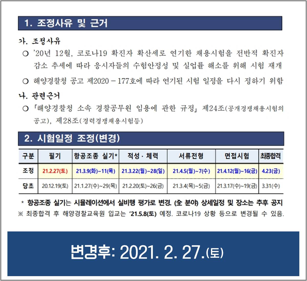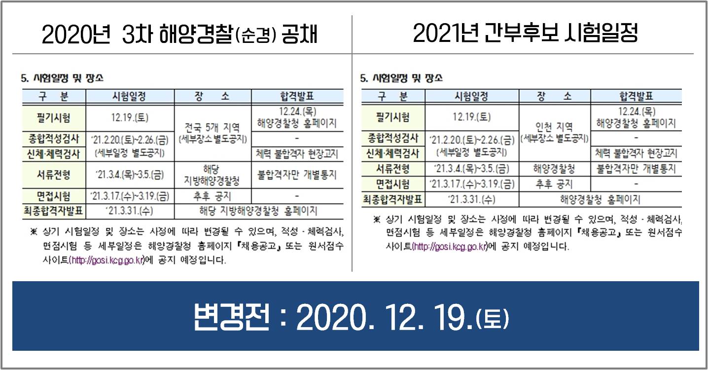 변경 전 : 2020년 3차 공채 및 경채 / 2021년 간부후보 시험일정